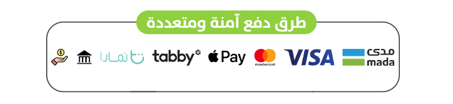 - طرق دفع سهلة و آمنة ( الدفع عند الاستلام - التحويل البنكي - بطاقة فيزا أو مدى - خدمة التقسيط من خلال طريقة الدفع تابي.